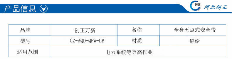 產(chǎn)品名稱(chēng):藍(lán)色全身五點(diǎn)式大鉤安全帶