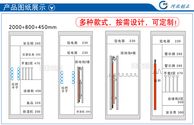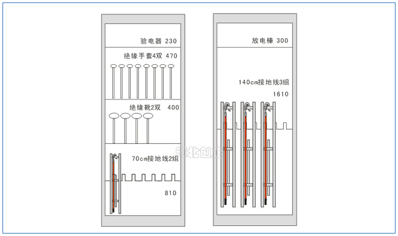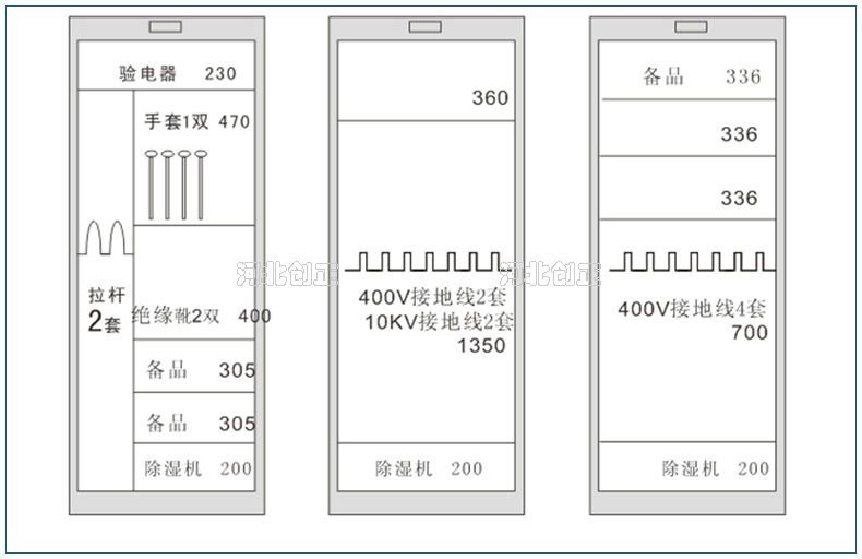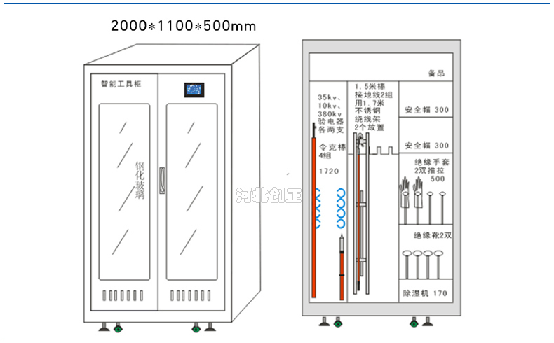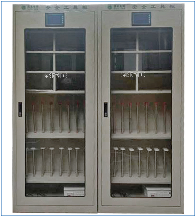 2、智能型安全工具柜裝有溫濕度顯示表和控制操作面板,顯示溫濕度和設備運行狀態。柜底可選擇安裝萬向輪和定位螺桿;柜頂可選擇安裝吊杯,方便運輸。應用于不同溫濕度地區的不同電壓等級的變電站、集控站、線路工區以及電力公司等單位。